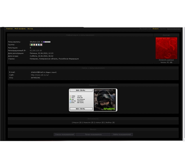 <td style="border:1px solid #252525;" width="85%" background=/img/9.gif><CENTER><B><FONT color=#333333>Информация о пользователе:</FONT></B></CENTER></td>