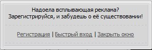 <?if($USER_LOGGED_IN$)?><?else?><script type="text/javascript">window.onload = function () {new _uWnd('site','',-275,-70,{align:'center',header:0,resize:0,nomove:1,modal:0},'<div>Надоела всплывающая реклама?<br>Зарегистрируйся, и забудешь о её существовании!</div><hr><a href="/index/3">Регистрация</a> | <a href="javascript://" onclick="_uWnd.close(\'site\');new _uWnd(\'LF\',\' \',-250,-110,{autosize:0,closeonesc:1,resize:1},{url:\'/index/40\'});return false;">Быстрый вход</a> | <a href="javascript://" onclick="_uWnd.close(\'site\')">Закрыть окно</a><hr>');}</script><?endif?>
