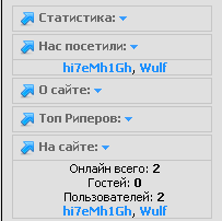 <div align='left'><a href="javascript://" onclick="$('#nasite').slideToggle('slow');" class="statx"><img src="http://rip-zone.net.ru/img/strelka.png" align="absmiddle" border="0"><span style="0088ff"> На сайте: </span><img src="http://rip-zone.net.ru/img/other/arrow_down.png" border="0" align="absmiddle" style="margin:0px;"></a></div>